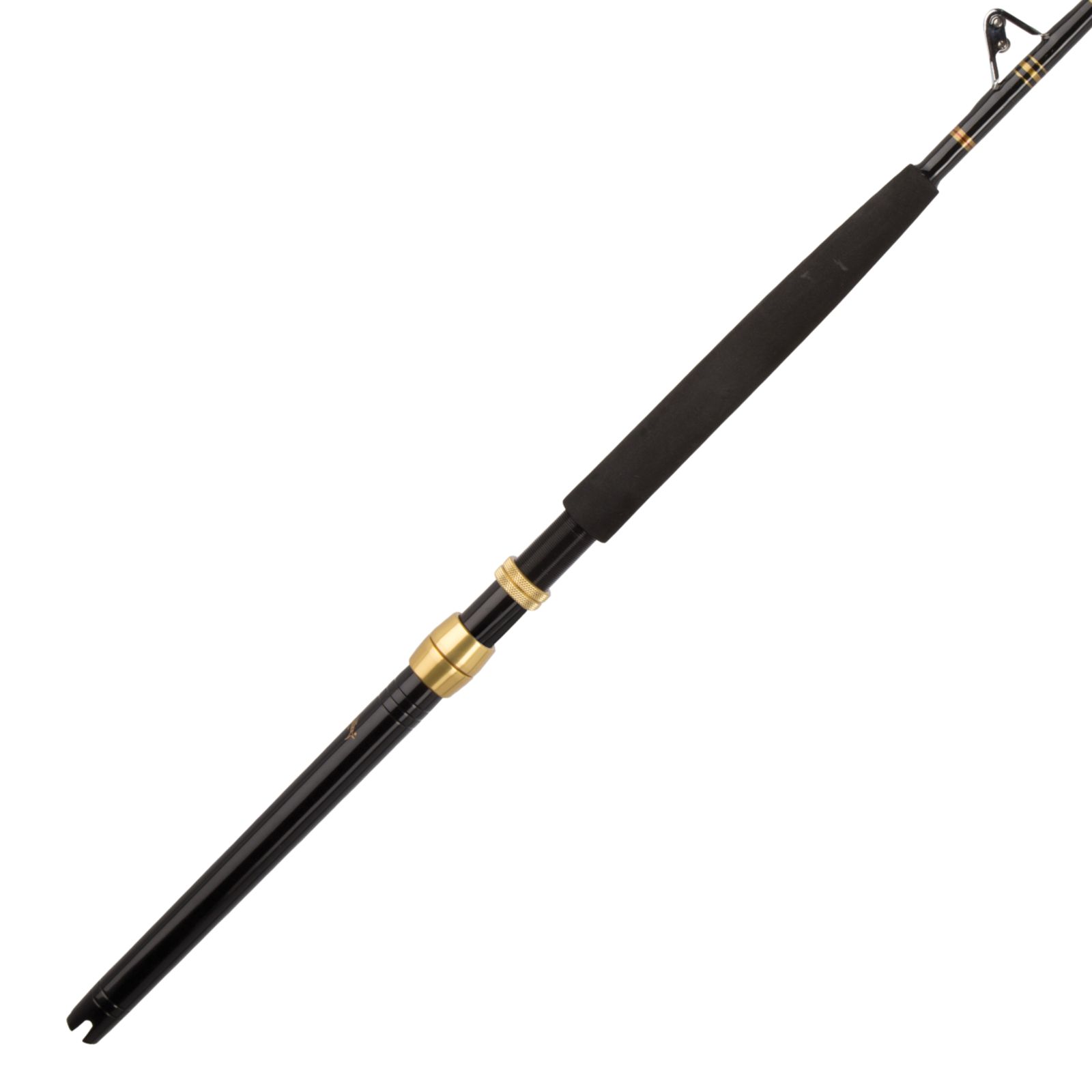 the Tuna Stick boat rods feature a one-piece tubular glass blank with a solid tip perfect for fighting fish in the chair or on the deck. Paired with an International® VSX