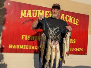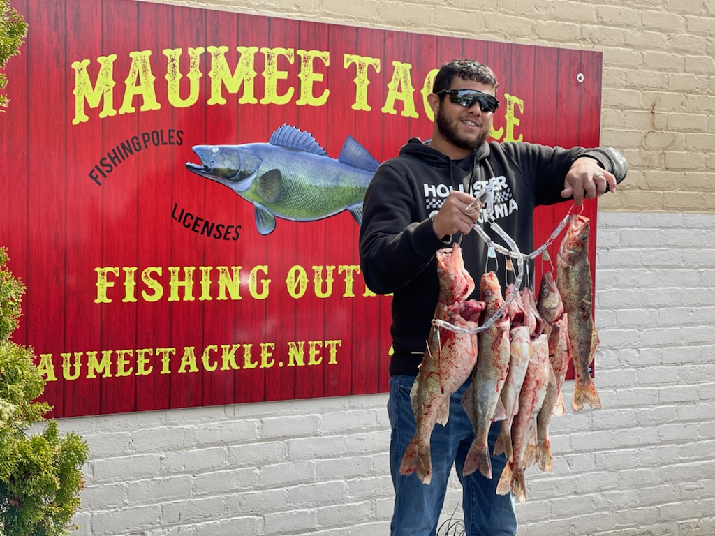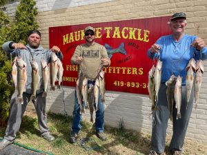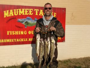The last four or five days have been really good fishing. we did have a break in the action Sunday morning with the cold and the rain but that’s okay the water we got helpped bring a nice big push of fish in. Right now we are mostly seen 16 to 20-in jacks being caught, a few of the smaller females mixed in there as well. Orleans Park ,White Street and the towpath have still been very good as those are the areas where the current slows down just a little bit and those fish like to lay up to catch a breath and spawn while out of that big heavy main current. With the sunshine the brighter colors have been working good, White tails, pink tails, green sparkler tails, and yellow have all been very productive. Today the temperatures are moderate, but tonight it looks like it’s going to get cold again which tends to slow the fishing down a little bit, but that’s okay we don’t want that River to heat up too much. Remember the spawn is all based on water temperature once that water gets too warm bam everybody spawns like crazy and they head back to the lake and the white bass come in. Now don’t get me wrong I love the White Bass run ,it’s a blast, but I’m hoping for another solid 3 weeks or more of smashing these walleye. So far it’s been a very good run and like I said the last few days have been really good fishing.