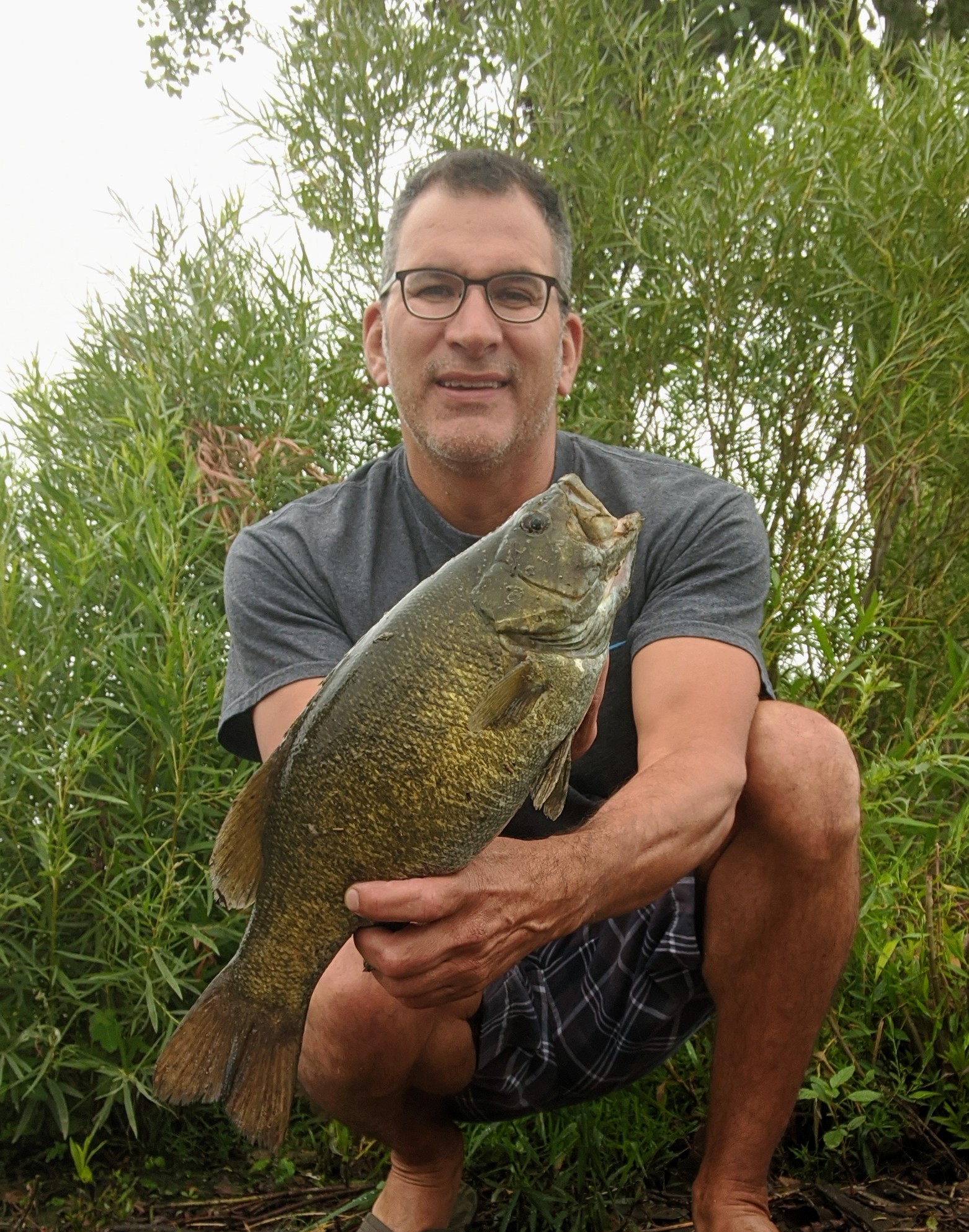 Day two of the drizzle and slight cooldown. The rain hasn’t been enough to change the river level at all since its mostly been drizzle and the dry ground is soaking it right up. Since we didn’t have any kayakers today I ran down to do a little business research and lo and behold a nice small mouth bass! Pretty exciting, may be that this cooldown has them reactivated , because its been a very slow bite on the river for the whole month of July. It was just too hot for any action.
